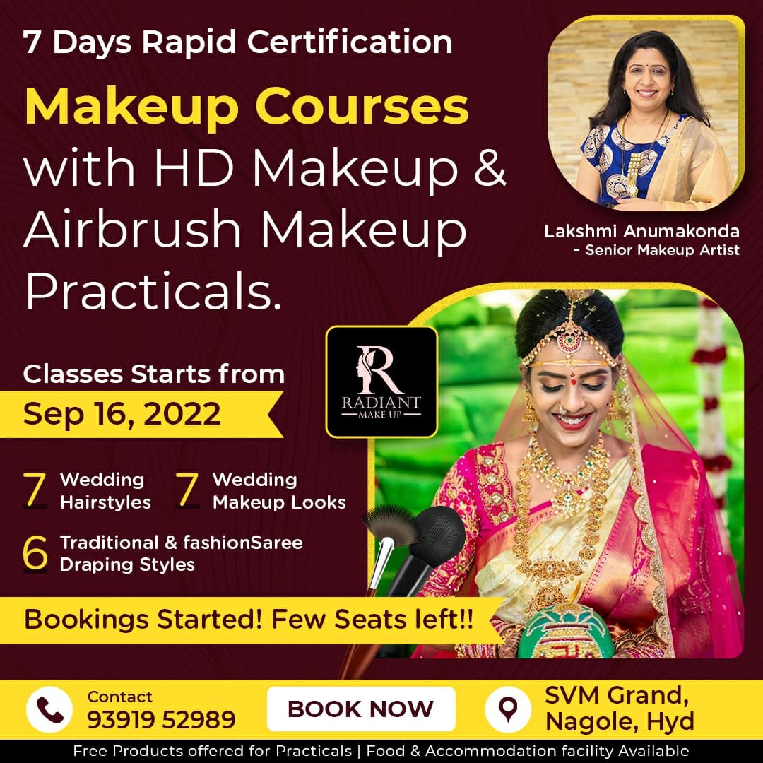 This course is for Make-up Artists and for beginners as well. Students will learn the most popular bridal make-up techniques such as, Asian, Telugu bridal makeup, no makeup makeup look etc. Students can achieve the widest range of experience and skills from our courses in 7 days.